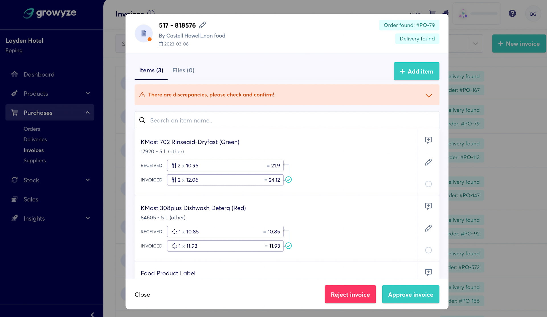 growyze’s unique three-way invoice validation also automatically matches orders, to deliveries and invoices, so you can see any invoice discrepancies and ensure you don’t pay for any items you haven’t received.